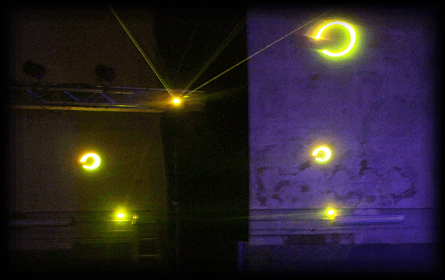 Équipement : 3 projecteurs couleurs de lumière cohérente, logiciels affichant les stimulations et de contrôle crees pour l'occasion.